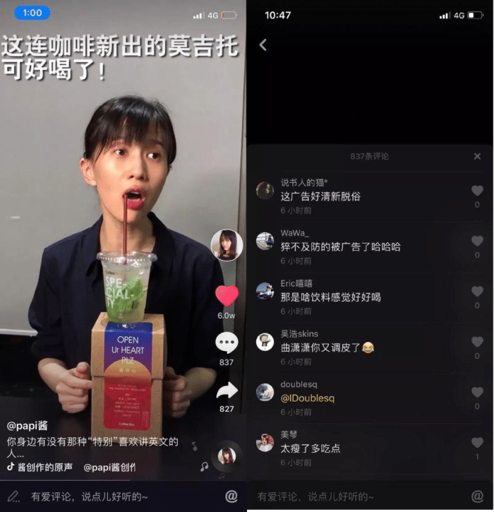 很难说,连咖啡的这次新品热卖是来自抖音的流量,当然,毕竟连咖啡也只是和papi酱个人进行了一个合作,而并没有与抖音官方联合运作这件事。但我认为,papi酱的首个抖音广告还是比较成功的。